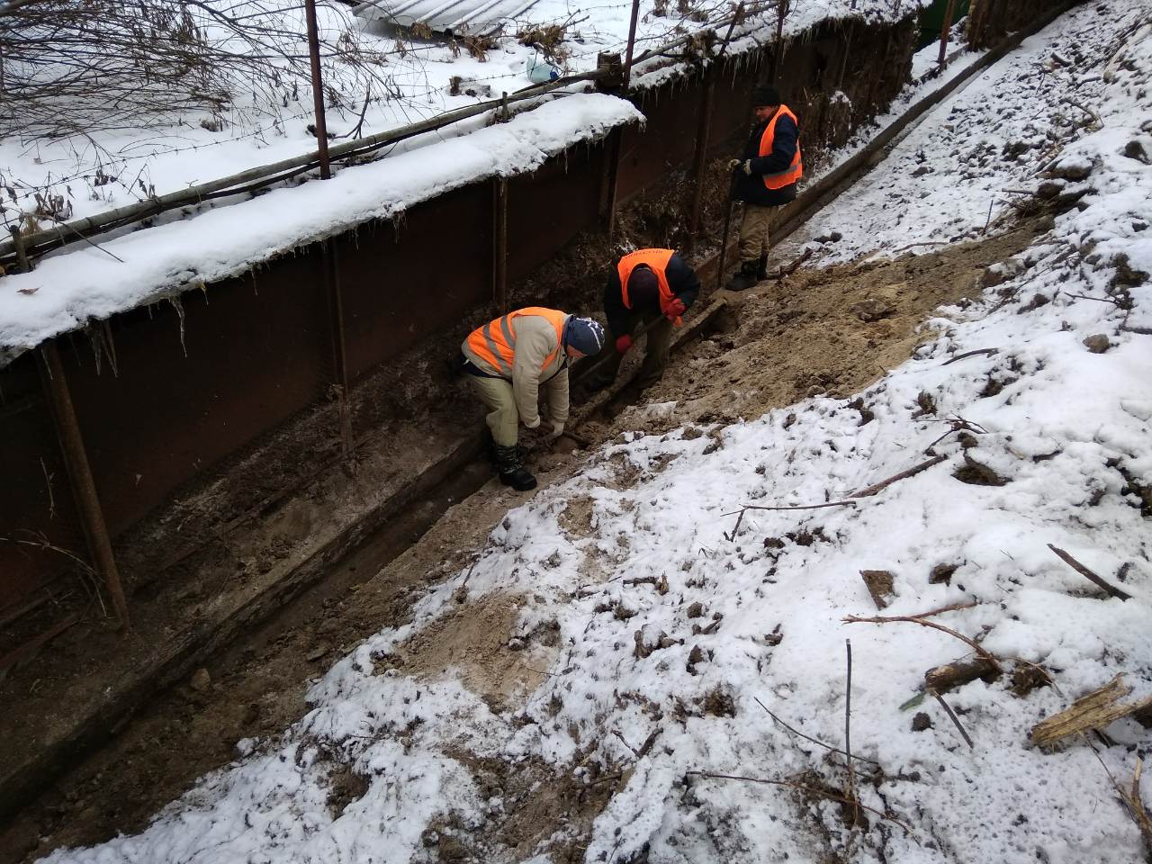 Чищення лотків за підпірною стіною біля станції метро "Дніпро"