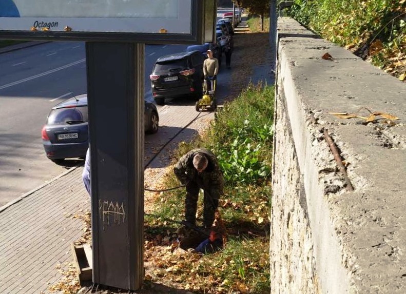 Чищення труб пристінного дренажа підпірної стіни №16 на вул. Старонаводницькій. Експлуатаційна дільниця №3