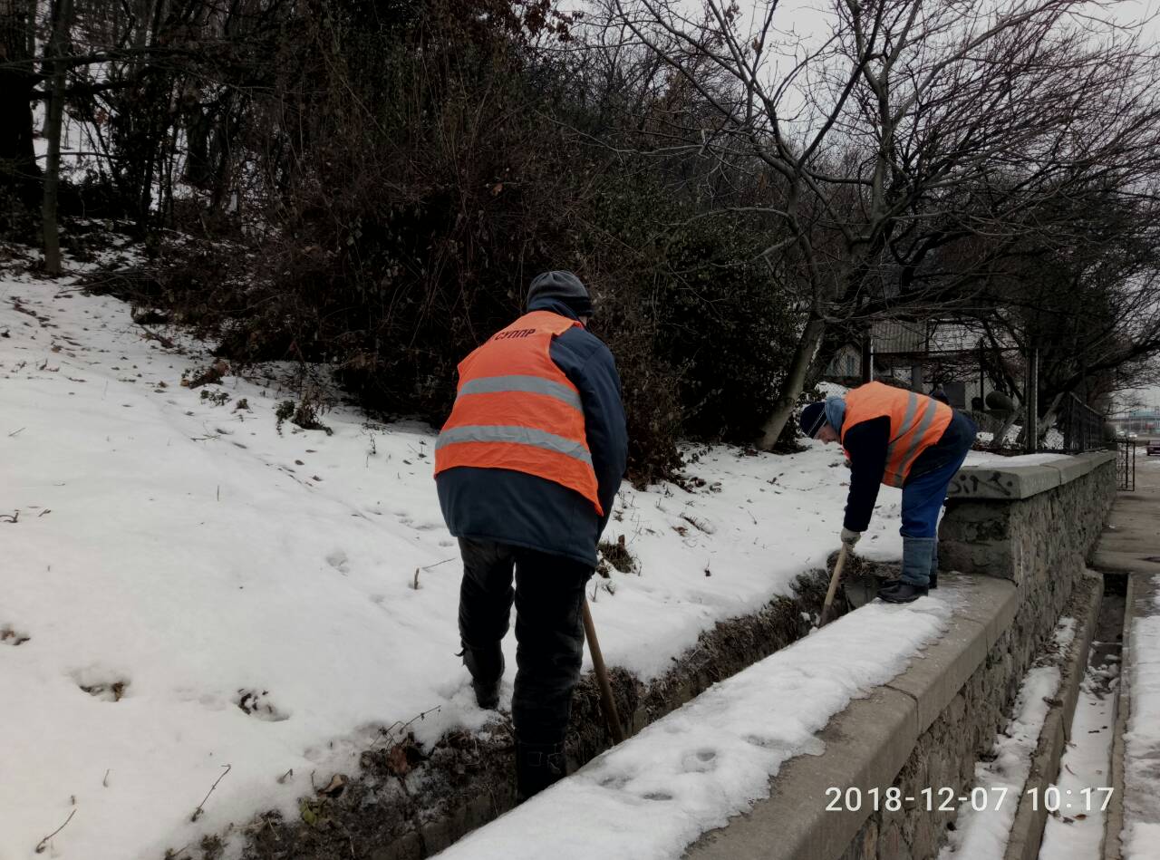 Чищення лотків за підпірною стіною біля станції метро "Дніпро"