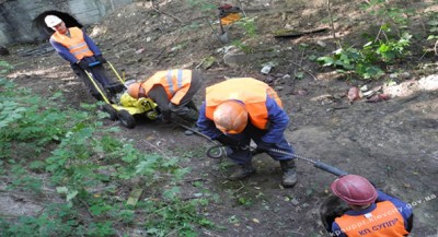 Очищення випуску з дренажної галереї № 59 в яру біля вул. Пугачова в Подільському районі.