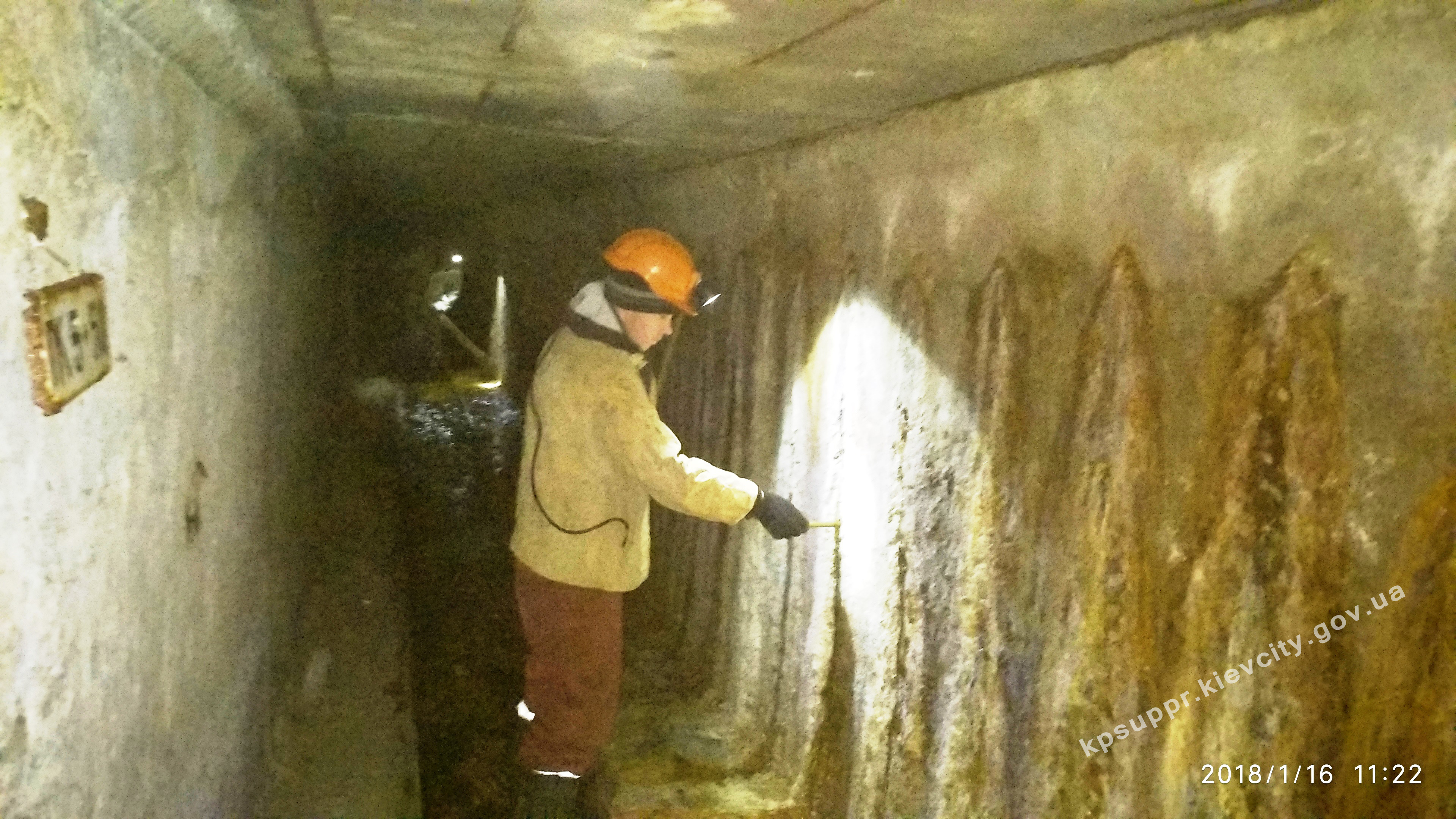 Чищення стін, дренажних отворів та лотка дренажно-штольневої системи №67 від солей та ґрунту.