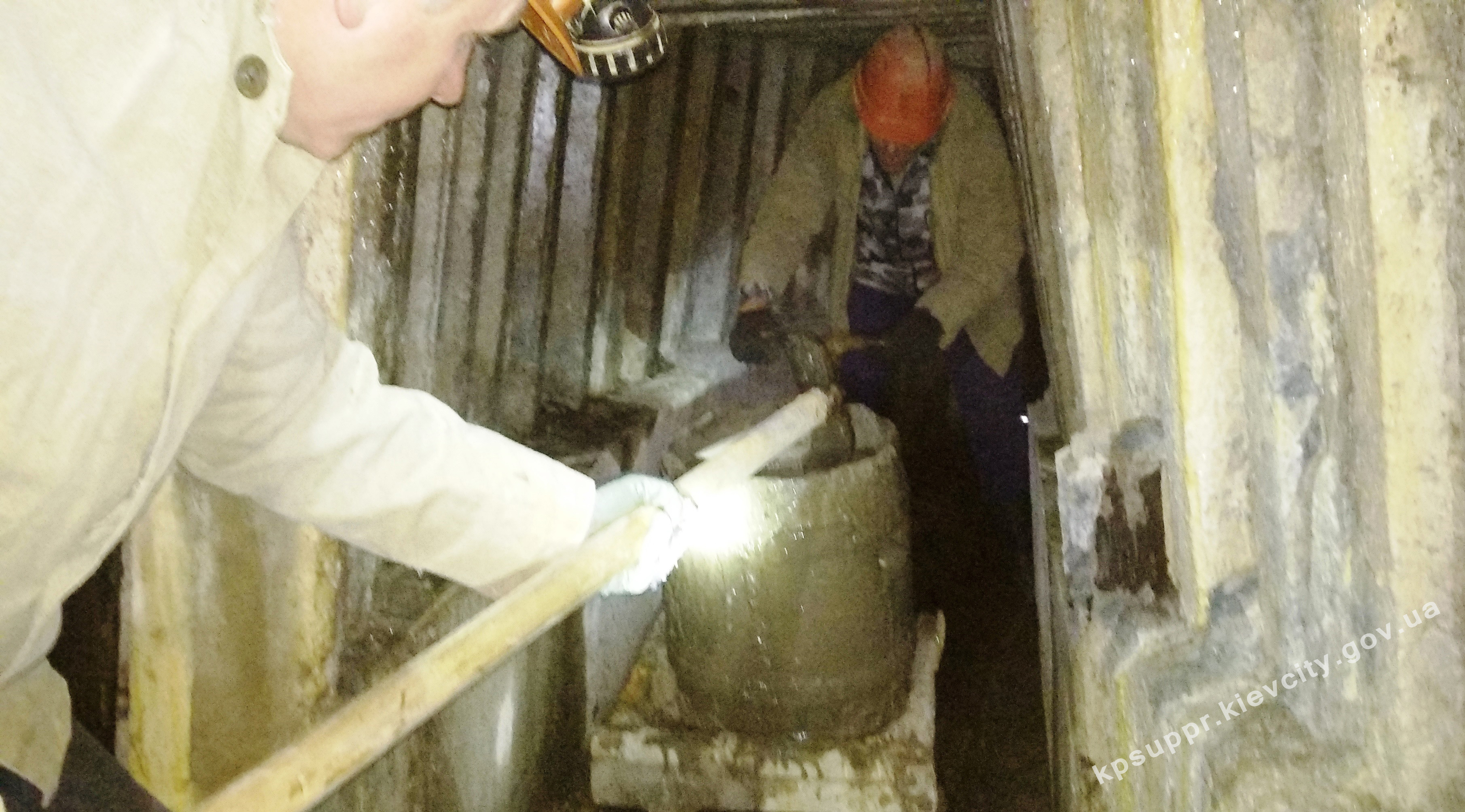 Чищення труб променевого дренажа №6 на території Національного ботанічного саду ім. М. Гришка.