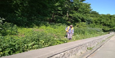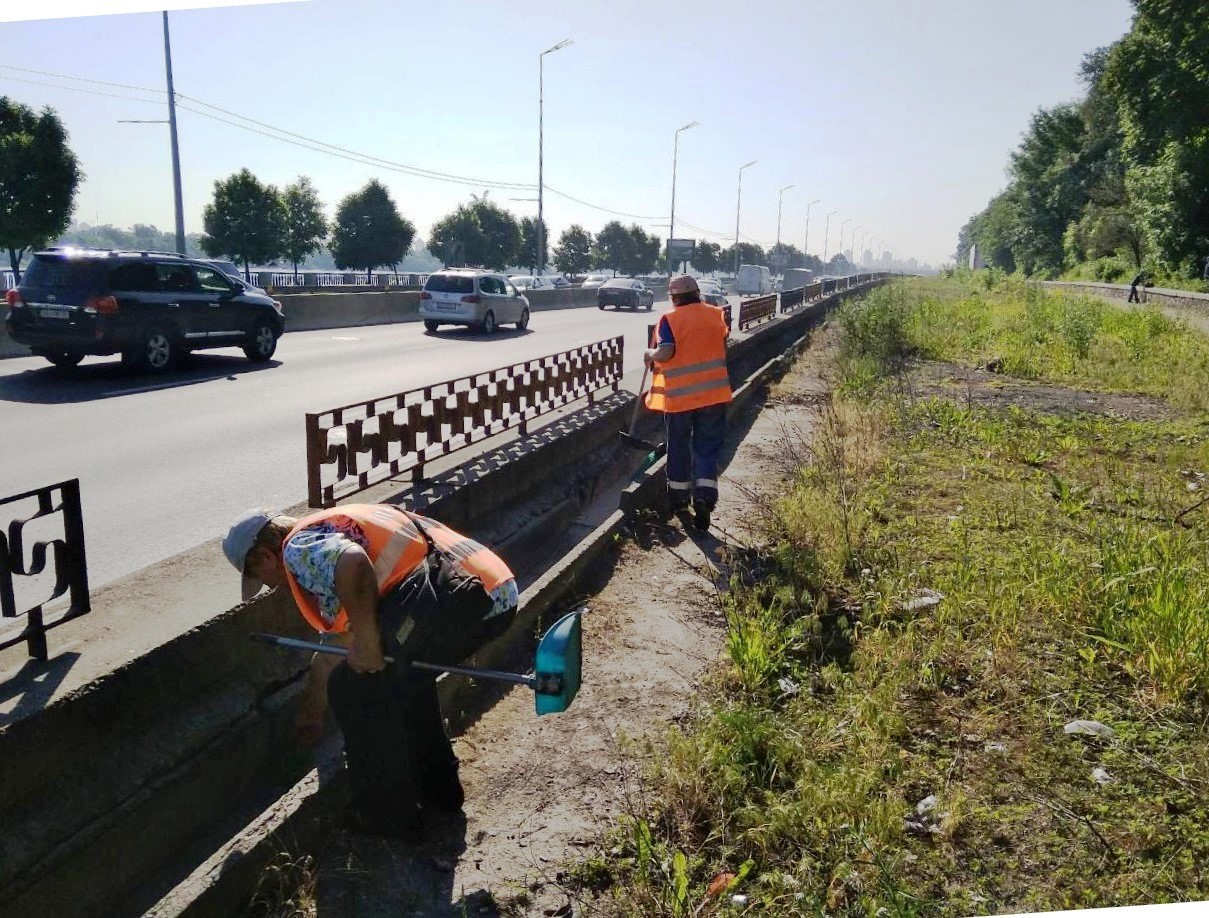 Покіс трави вздовж водовідвідних лотків за підпірними стінами