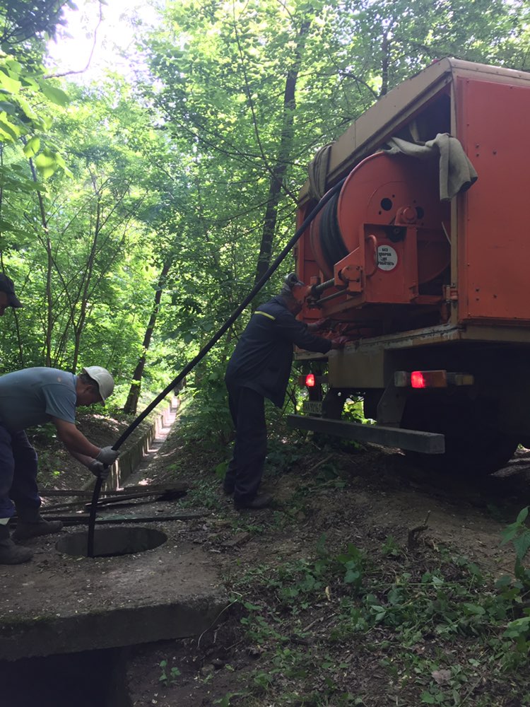 Очищення водостоків та дренажів у Реп’яховому яру за допомогою гідромонітора на базі автомобіля КАМАЗ КО 514 на експлуатаційній дільниці №2 КП «СУППР»