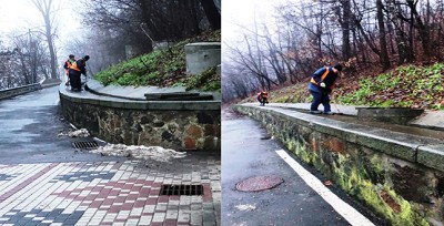 Очищення водовідвідних лотків за підпірними стінами біля пішохідного мосту через р. Дніпро