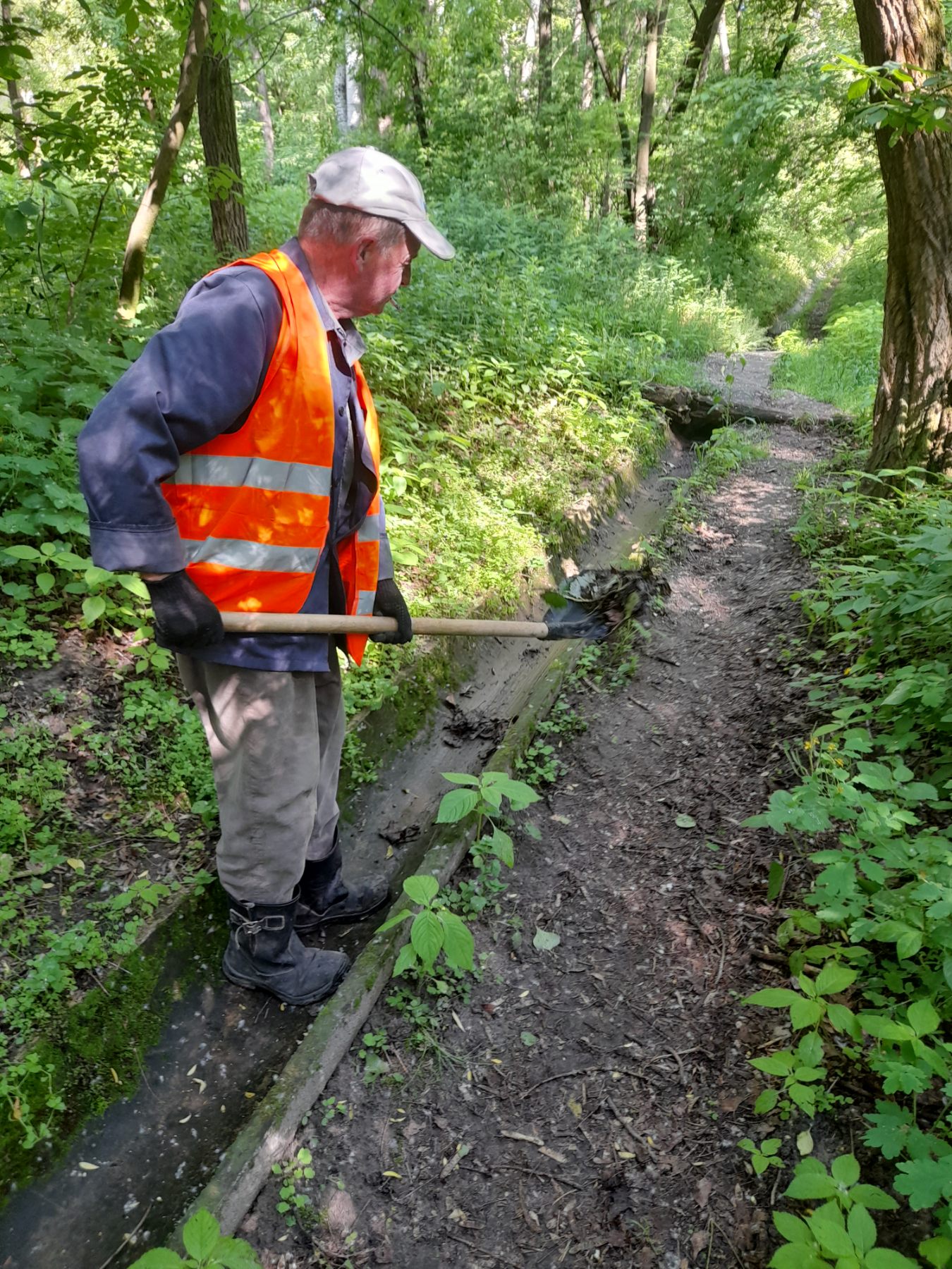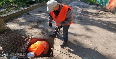 Чистка водостічних систем велосипедної доріжки біля Пішохідного мосту