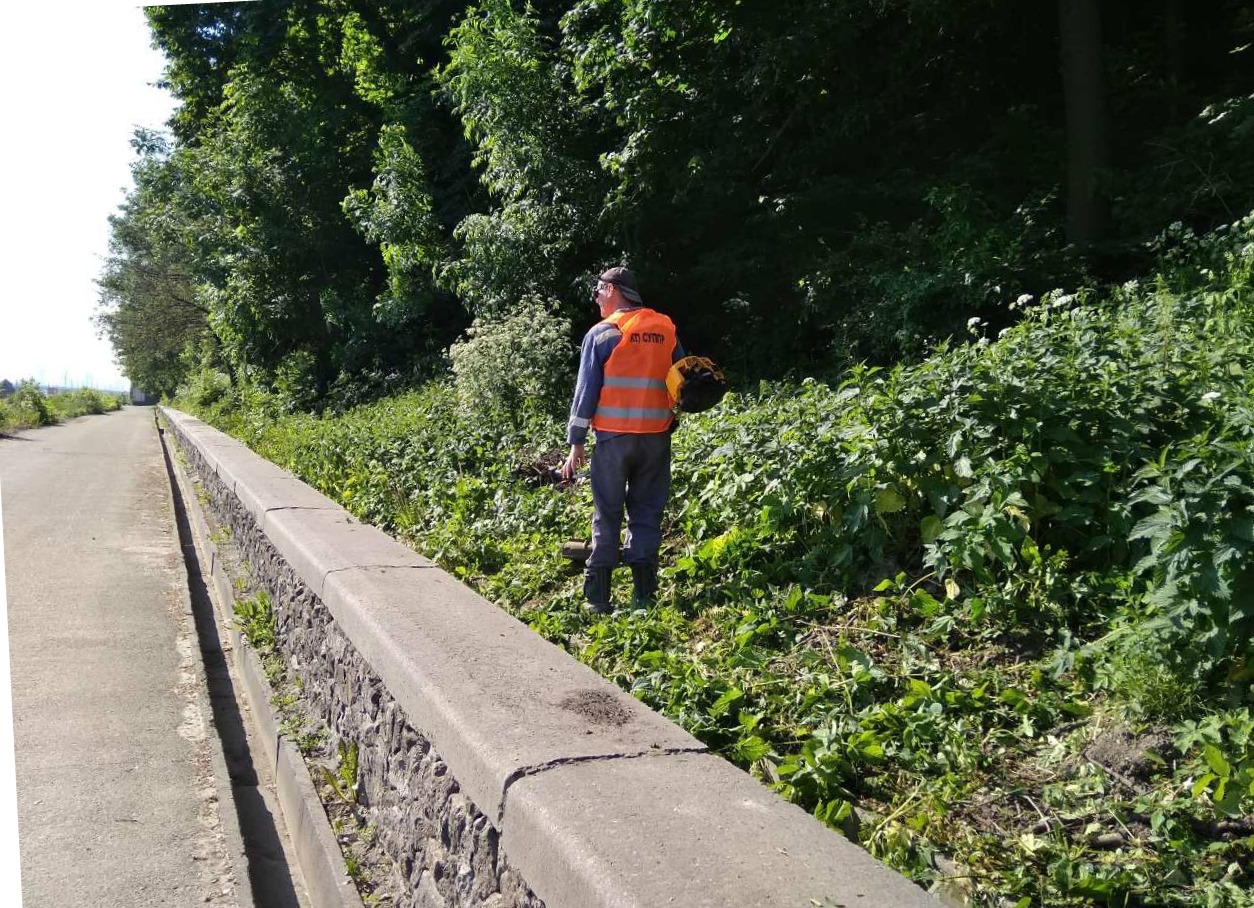 Обкошування водовідвідних лотків за підпірною у зсувонебезпечній зоні біля Набережного шосе