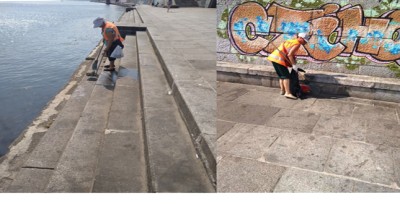 Прибирання променадної зони Набережного шосе. Експлуатаційна дільниця №7 КП «СУППР»