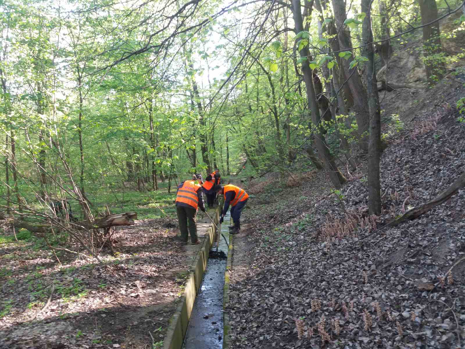 "Сирецький яр". Виконуються роботи по очищенню водозбірних відкритих лотків та чищенню дренажних колодязів
