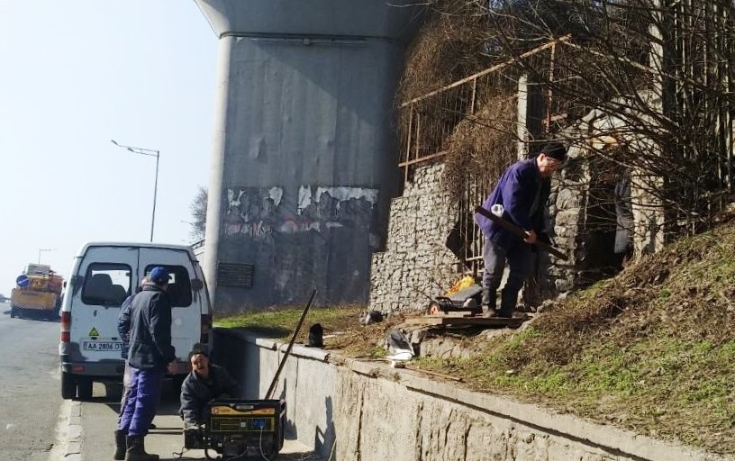 Заміна решіток водовідвідних лотків біля обеліску в парку Вічної Слави