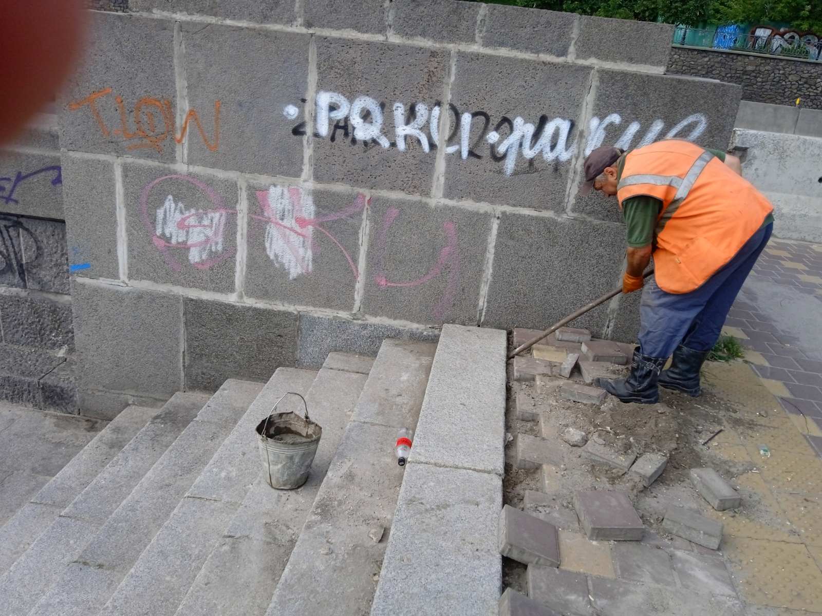 Ремонт сходів та колодязів Набережної Дніпра. Обкошування зливоприймальних лотків на вул. Сагайдачного