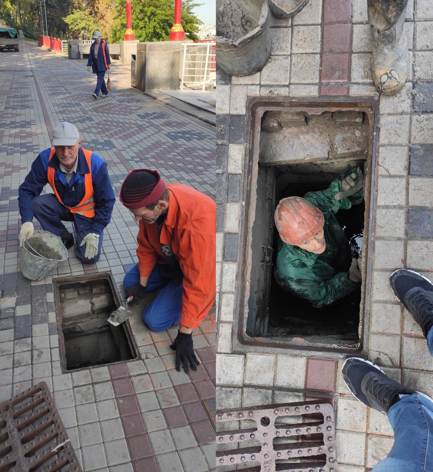 Чищення труб та ремонт зливоприймальних колодязів водостоку біля Пішохідного мосту через р. Дніпро