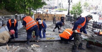 Робітники КП "СУППР" взяли участь в роботах з реконструкції сходів біля Національної філармонії України.