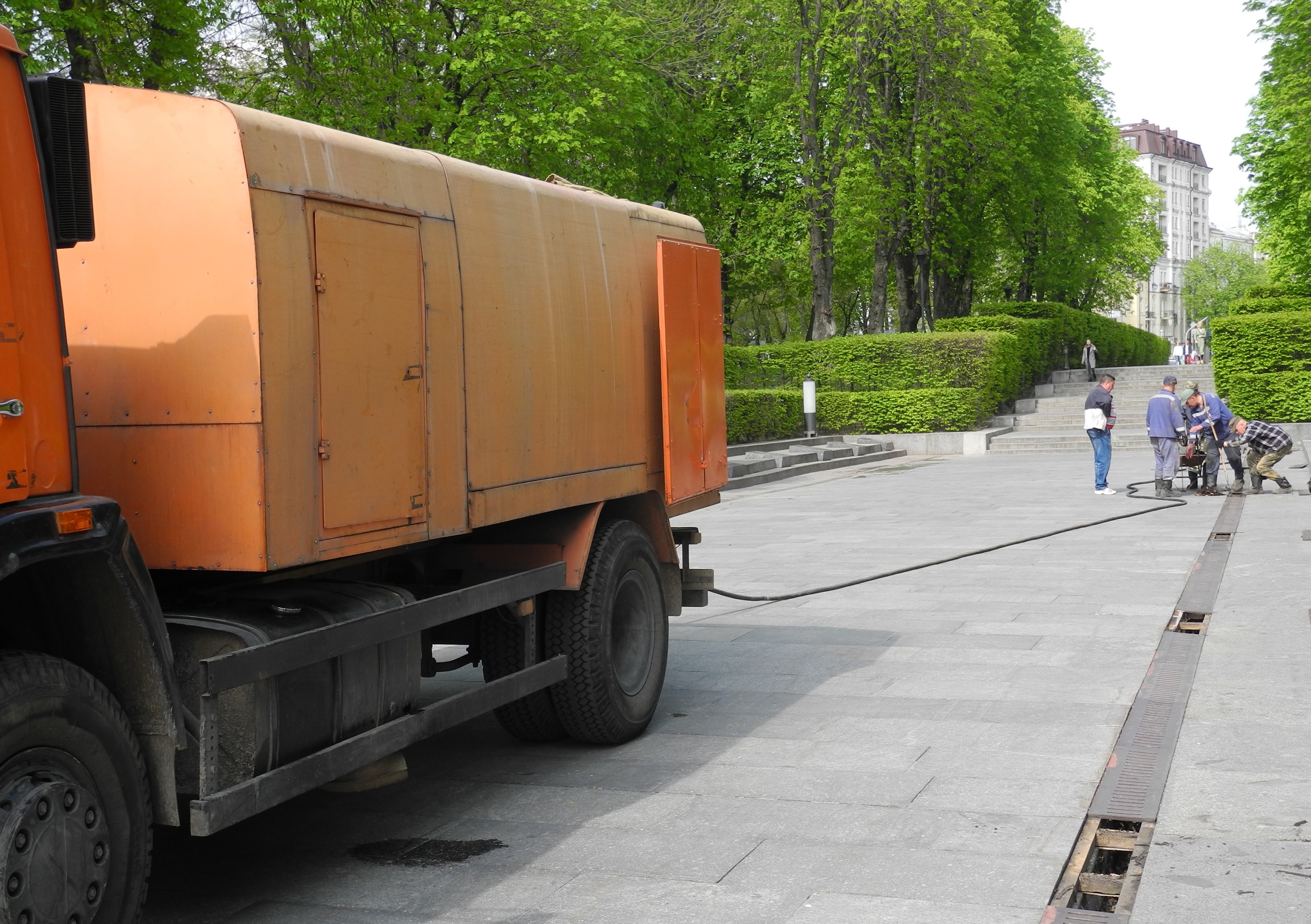 У Парку Вічної Слави робітниками експлуатаційної дільниці №6 очищено зливостічну систему на Алеї Полеглих Героїв (№1)
