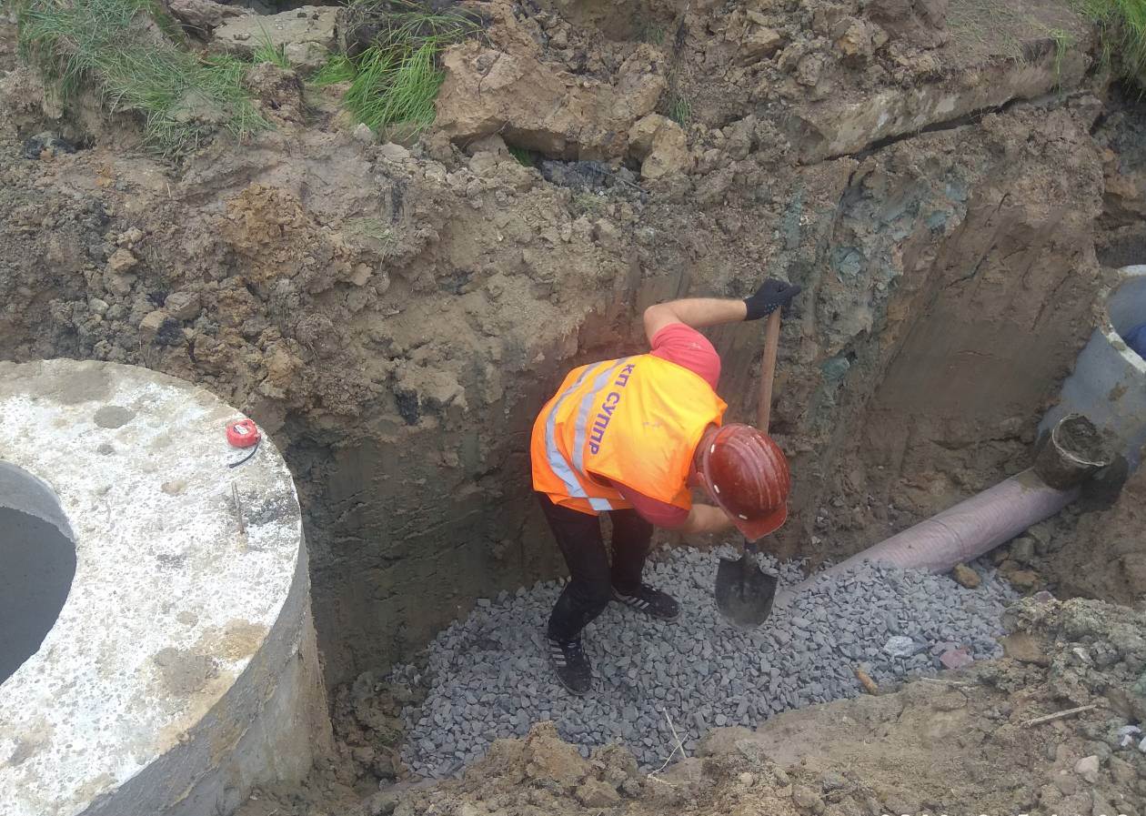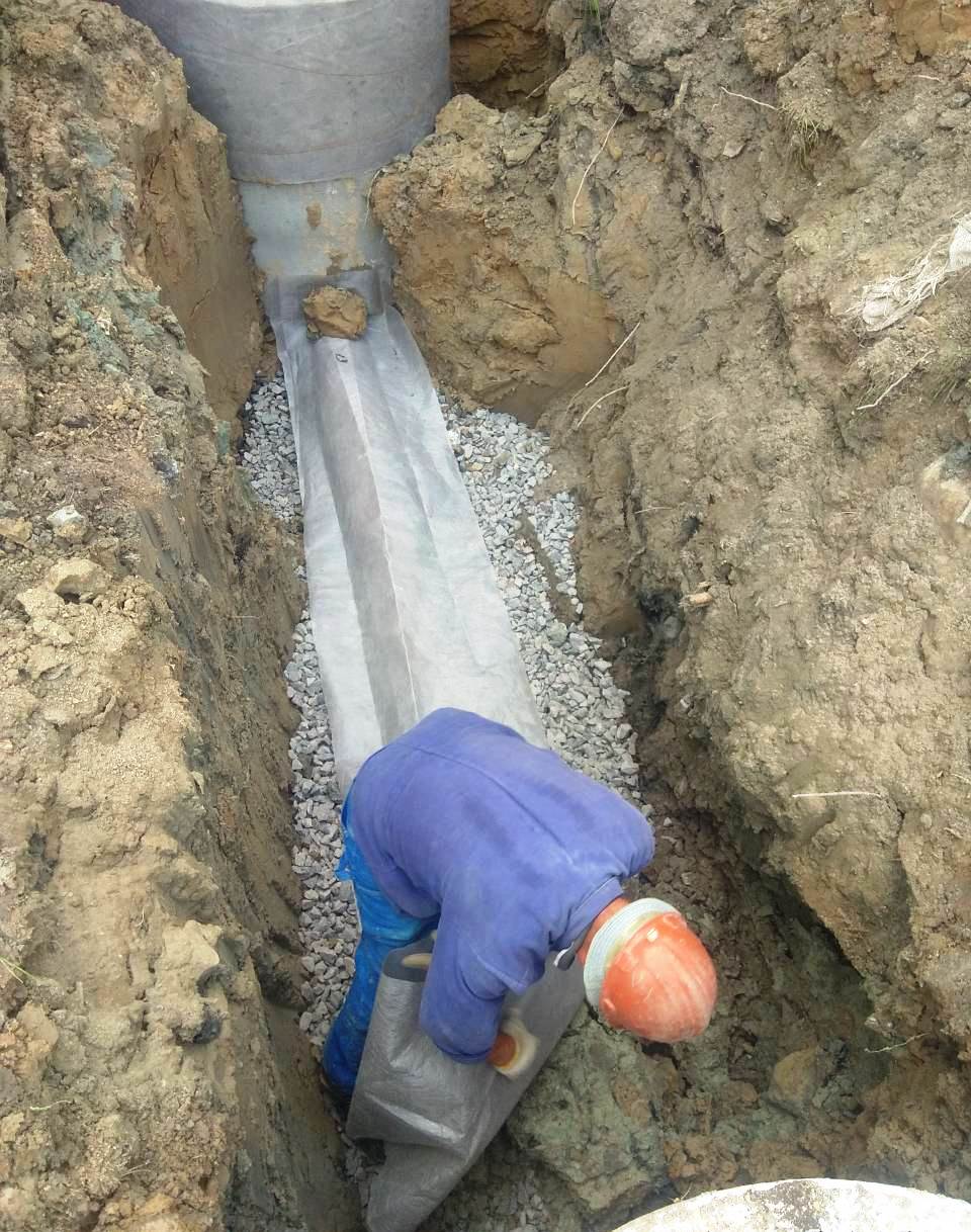 Улаштування дренажної системи працівниками дільниці №2 КП «СУППР» на будівництві другої нитки Головного міського каналізаційного колектора по вулиці Кирилівській,71