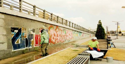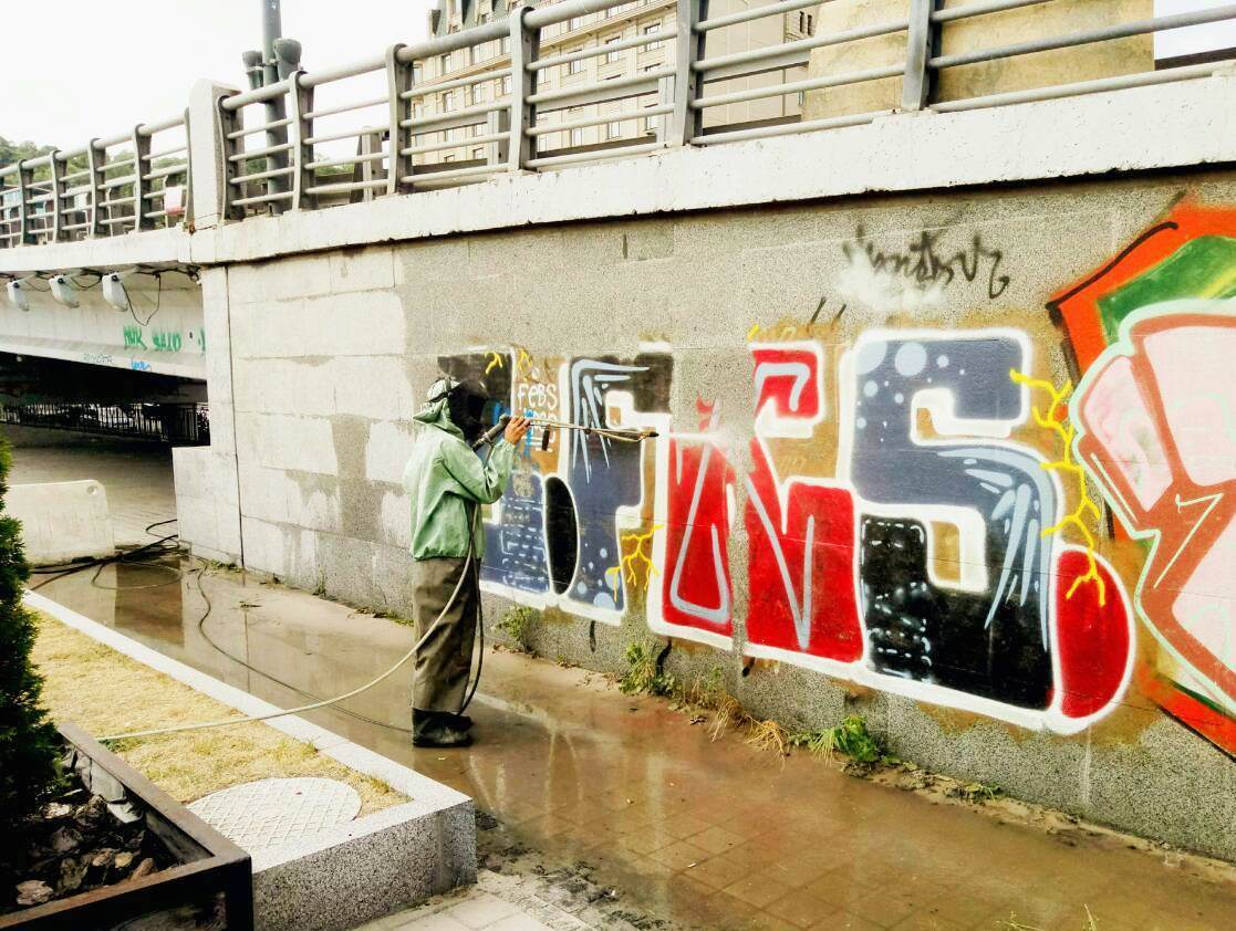 Виконання робіт з очистки від «графіті» підпірних стін вздовж вулиці Набережно-Хрещатицької в межах реконструкції Поштової площі