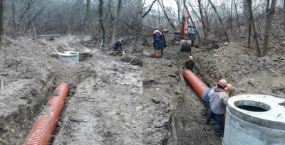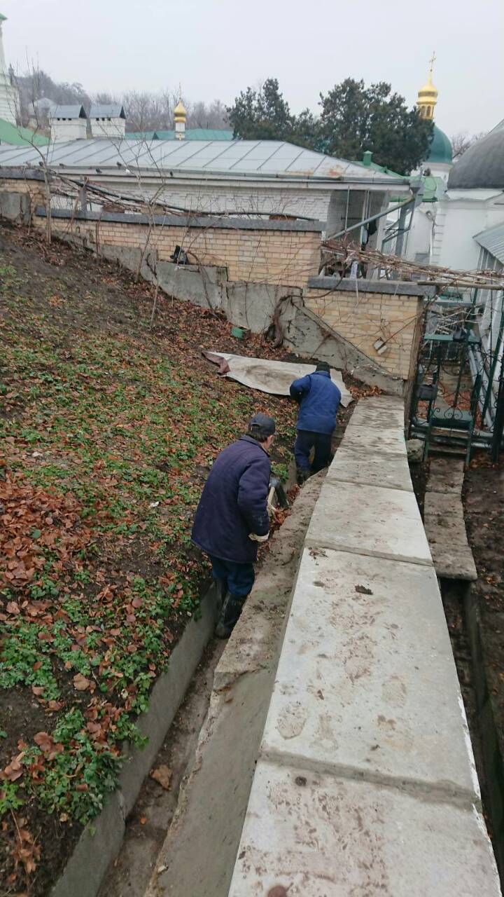 Чищення застінних водостічних лотків на території Києво-Печерської Лаври