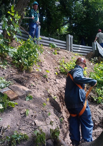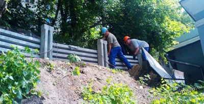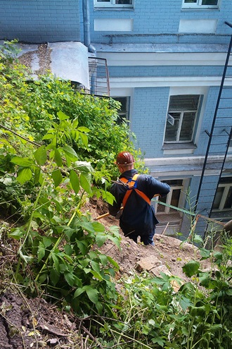 З тильного боку Національного академічного драматичного театру імені І.Франка виконуються роботи з підсилення підпірної стіни будівлі.