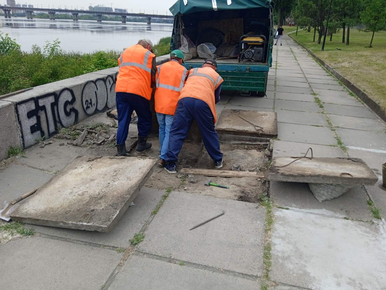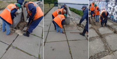 Заміна зруйнованих та старих плит на Набережній Дніпра
