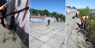 Знищення бур'янів та кущів на променаді та сходах набережної Дніпра